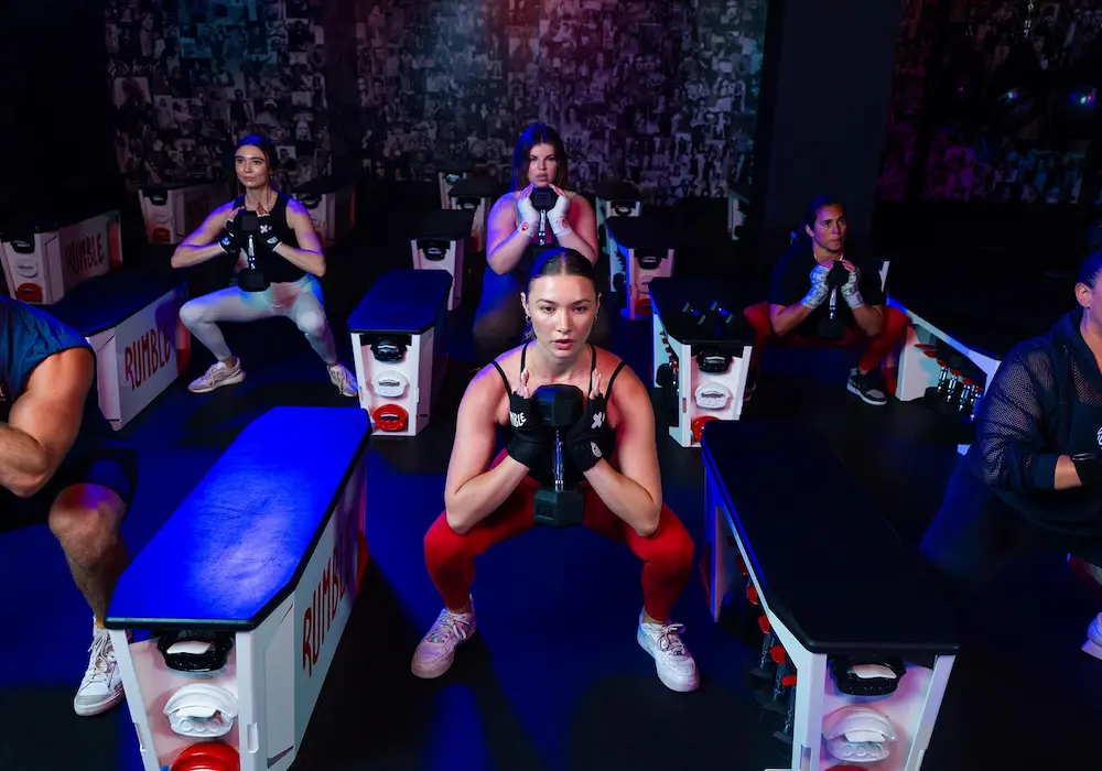 En Rumble entrenar es vivir la experiencia: luces bajas, playlists que elevan, coaches que motivan y una comunidad que vibra en cada round.